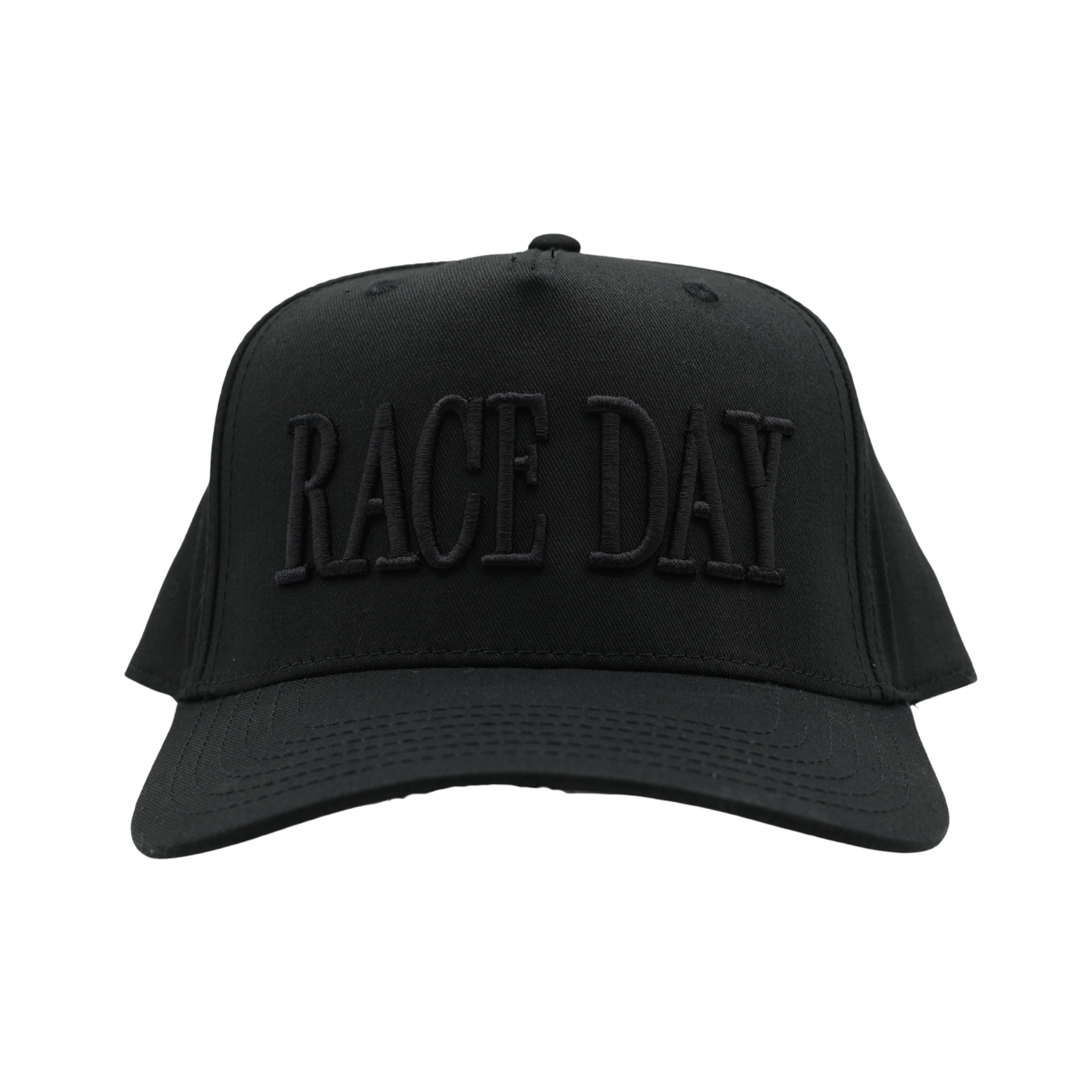 Show off your race day spirit with the RACE QUEEN COUTURE "RACE DAY" Snapback Hat. Featuring sleek black stitching on a black base, this hat adds a cool, subtle edge to any outfit. Perfect for fans and fashion lovers alike, it’s a stylish way to stay shaded and race ready.
