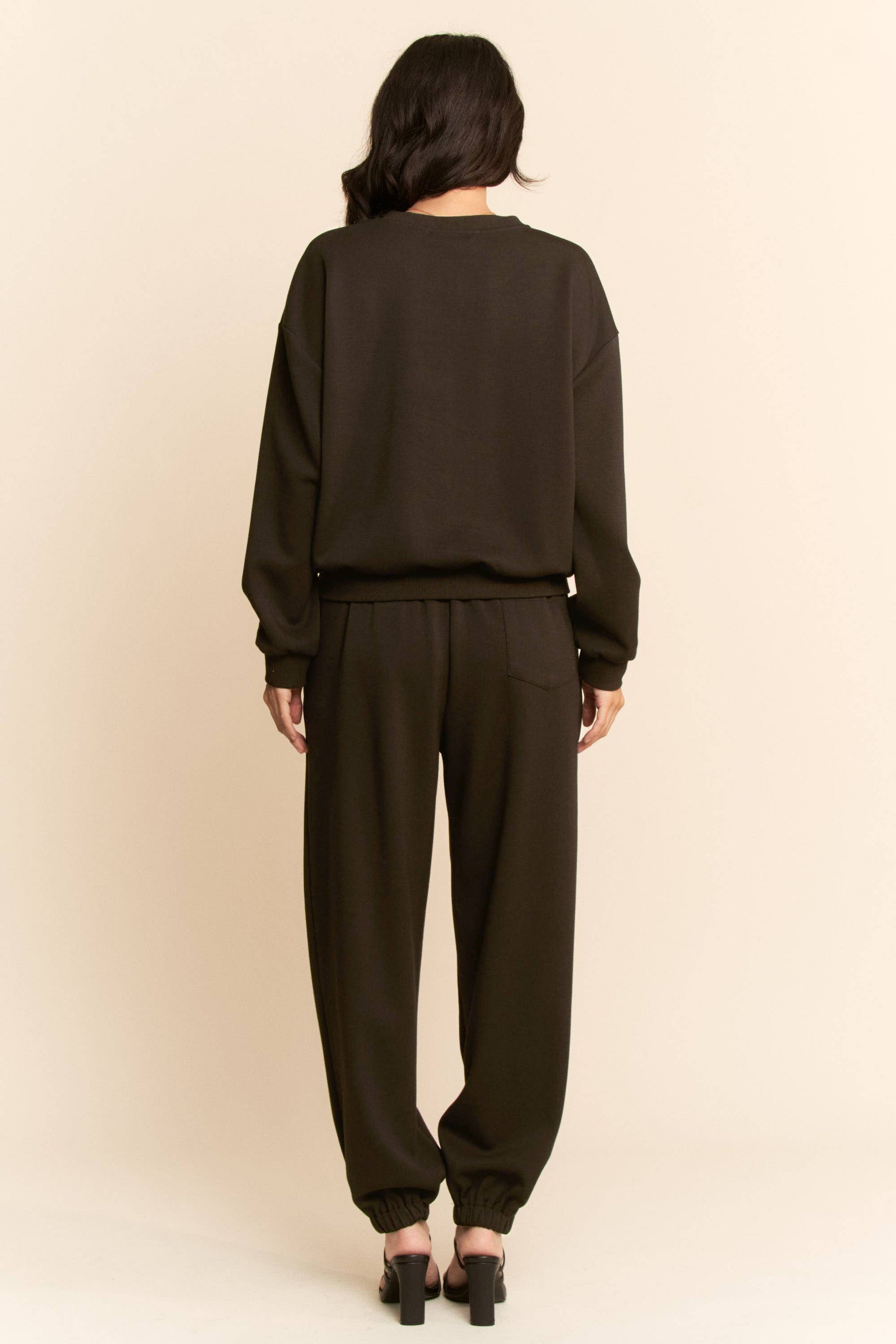 RHINESTONE BOW EMBELLISHMENTS DETAIL SOFT KNIT SWEATSHIRT TOP AND JOGGER PANTS SET